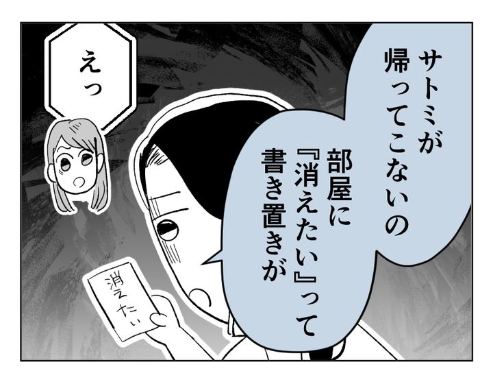 ミヅキさんにはレイナちゃんという高校1年生の娘がいます。レイナちゃんは同い年で幼なじみのサトミちゃんと仲良し。別の高校に通っていますが、放課後待ち合わせをして遊んだりしています。けれど最近その頻度が増えてきたそう。レイナちゃんはサトミちゃんに学校の相談をされてから、サトミちゃんのことが心配でたまらないようです。ミヅキさんも心配しますが、詳しくは教えてもらっていないのでどうすることもできません。