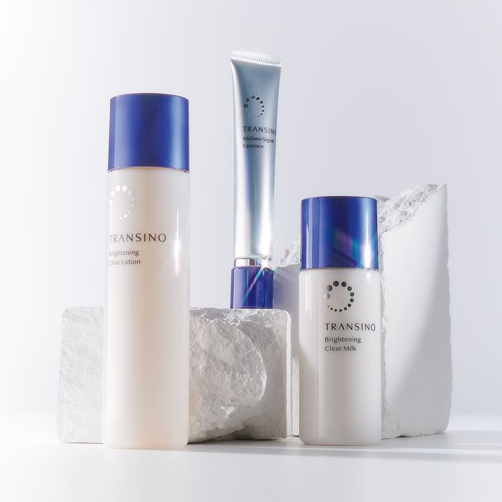 左から:透明感をもたらす美白化粧水。トランシーノ薬用ブライトニングクリア ローション(販売名:DS ローションb)150ml ¥3,630、しみの根本原因にアプローチする美白美容液。トランシーノ薬用メラノシグナルエッセンス(販売名:DS 美容液d)30g ¥4,950、ふっくら肌に導く美白乳液。トランシーノ薬用ブライトニングクリアミルク(販売名:DS ミルクb)100ml ¥3,630[全て医薬部外品]<価格全て編集部調べ>(すべて第一三共ヘルスケア)