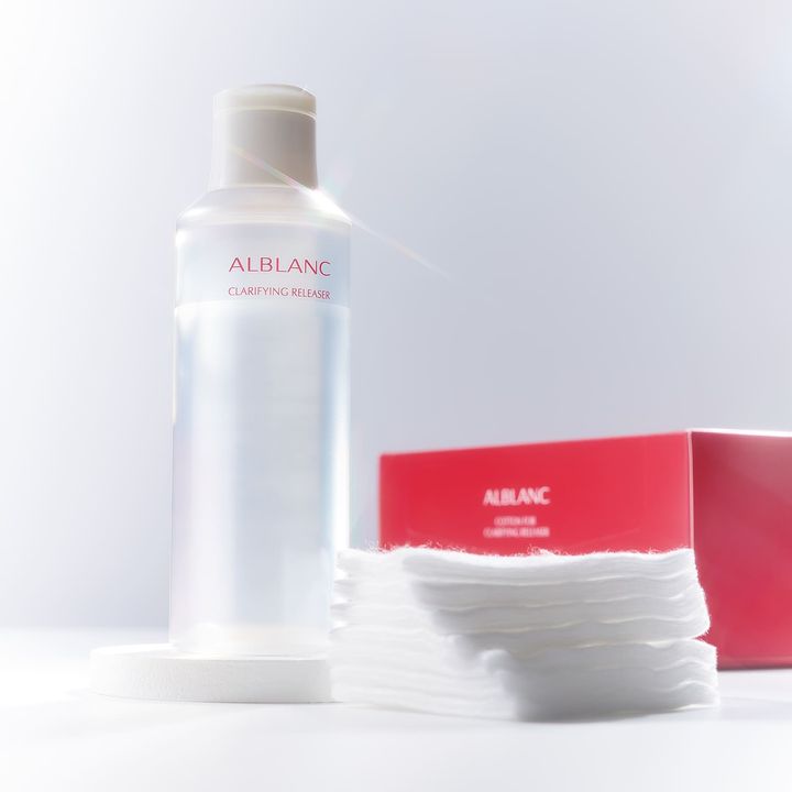 左:時短でメーク落とし・毛穴黒ずみケア・角栓ケアまで搭載した次世代型クレンザー。拭き取った後に洗い流すことで明るいツルすべ肌に。クラリファイイング リリーサー 180ml ¥3,080、右・洗浄効果を最大限引き上げる専用コットン。クラリファイイング リリーサー専用 コットン 60枚入り ¥440(すべて花王)