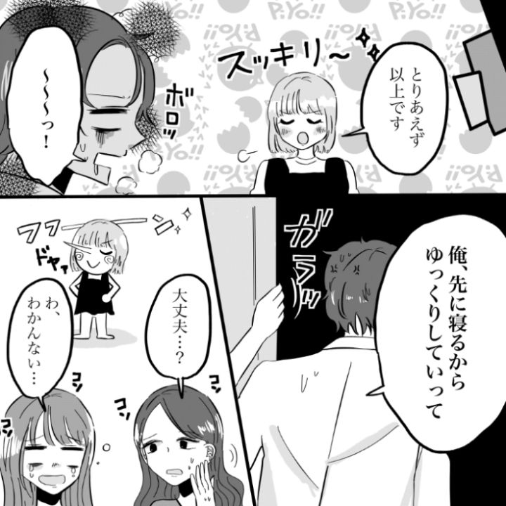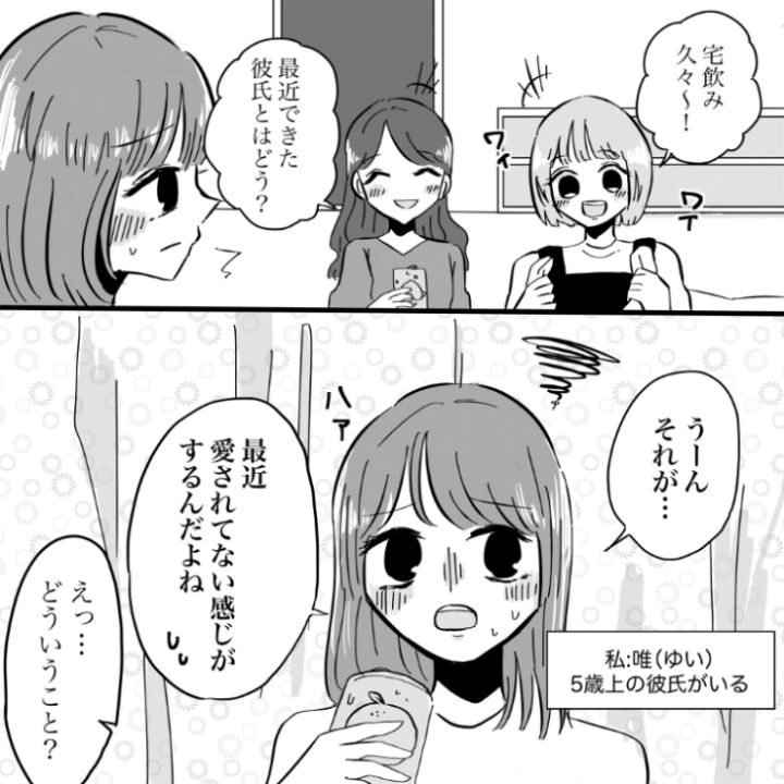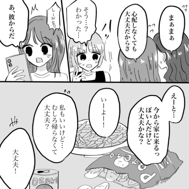 久しぶりにお家で友達と飲んでいる主人公。どうやら今付き合っている彼氏に不満があるようで、友達に打ち明けたのですが、これがとんでもない事件を引き起こすことに・・・。