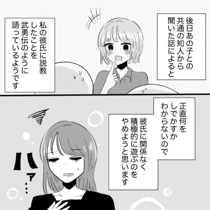 実際に読者が体験したリアルエピソードを漫画化!今回は、おせっかいすぎた女友達の言動がきっかけで彼氏と険悪になった主人公のお話をご紹介します。