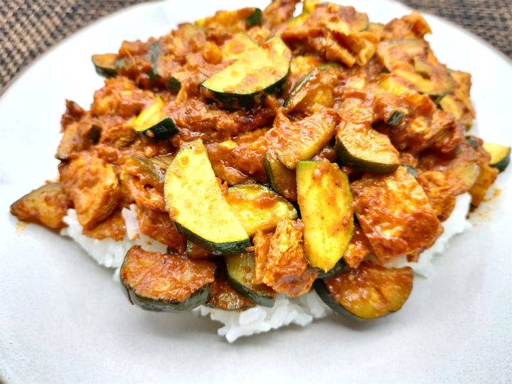 見た目はきゅうりっぽいのですが、実はかぼちゃの仲間。カロリーが低いのでダイエットにも向いていて、火を通すとトロトロになっておいしくなるという、いかにも人気が出そうな夏野菜です。最近はもっぱらオリーブオイルで塩焼きにして食べていましたが、まさかこんなにスパイスに合うとは思いませんでした。