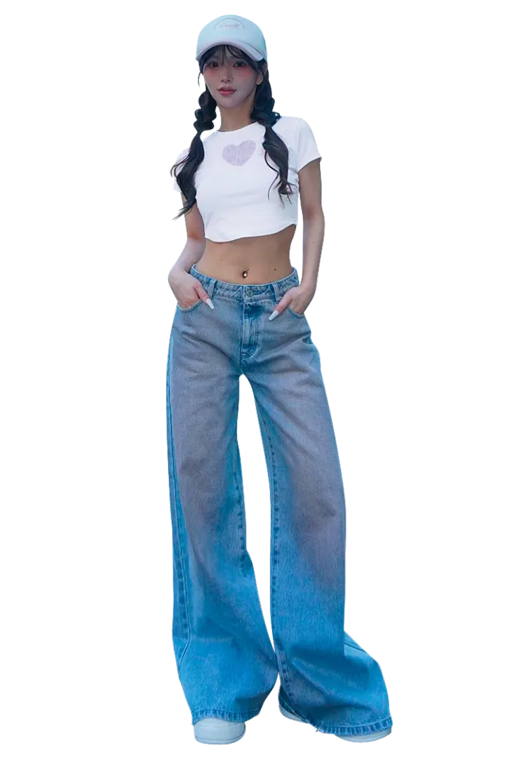 「クロップドTには、太めのパンツがおすすめ。ローライズでウエストを強調すると細見え&トレンド感あるコーデが完成します♡」
