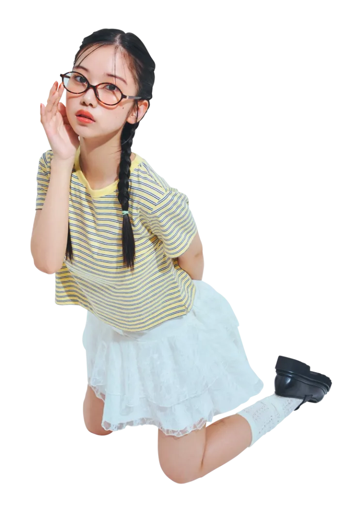ボーダー Tシャツ(一部店舗限定)3,490円/Gap レースミニスカート 1,099円/GRL メガネ 4,400円/NADIA FLORES EN EL CORAZON