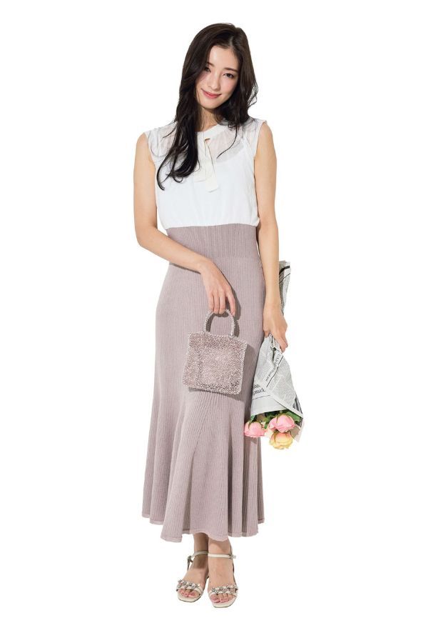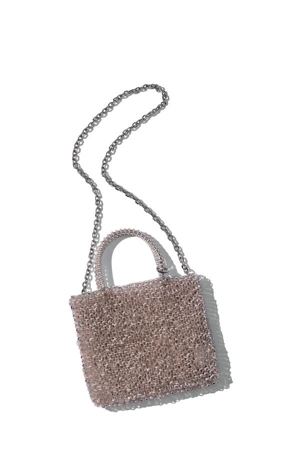 甘くなりすぎないパウダリーピンクが大人向き。ボウタイやフレアスカートといった定番フェミニンアイテムに、華やかなエッセンスを加えてくれます。ミニサイズながら伸縮性があり収納力抜群なので、メイク直しに必要なコスメ類もたっぷり入る♪