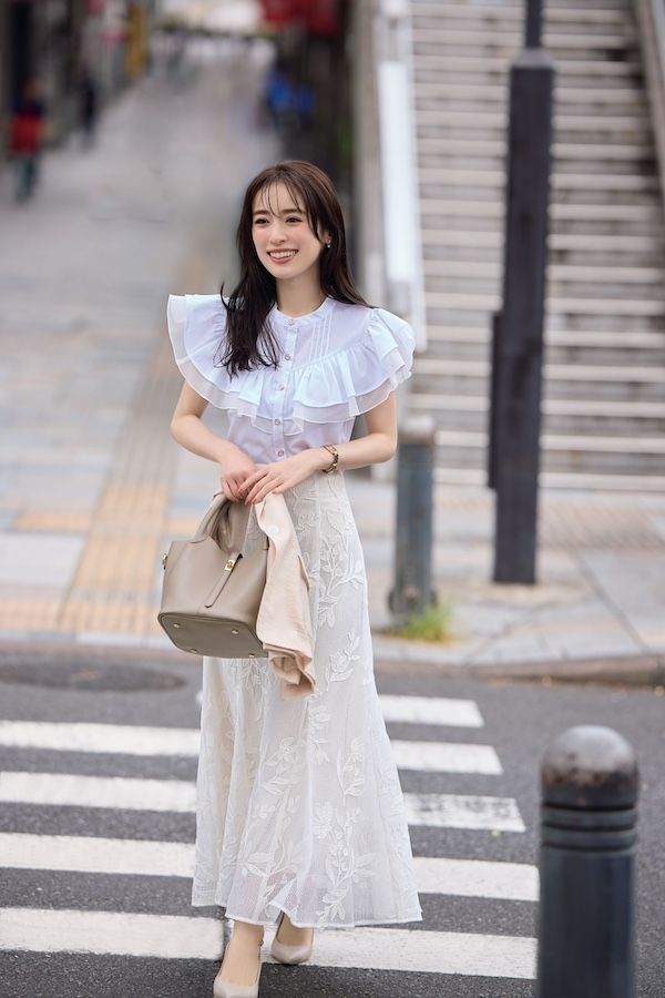 @外回りの日…肩をふわりとフリルが包んで優しげな印象