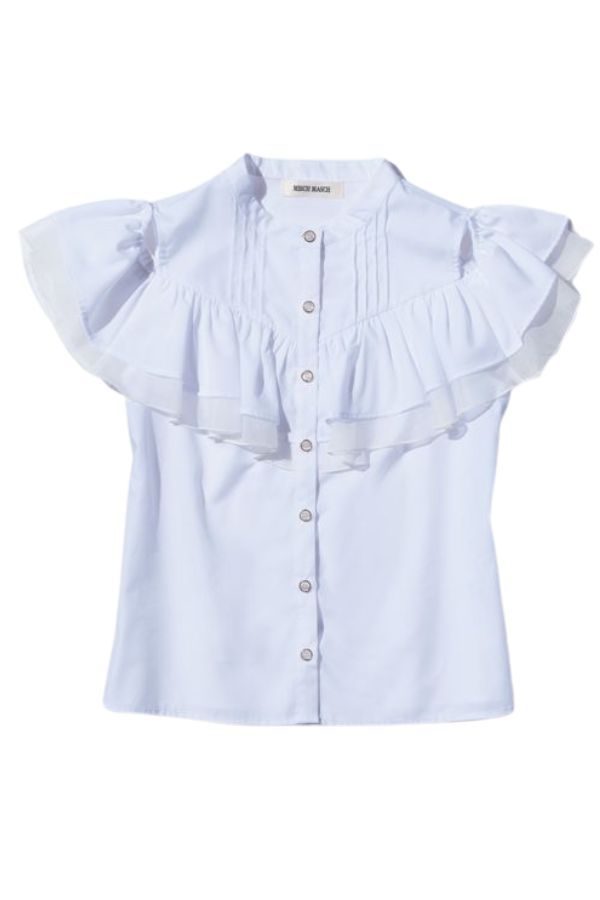 肌見せアイテムは2wayデザインで平日→休日で着回し! フリル袖の2wayブラウスは肩開きでトレンド感を出すもよし、肩を隠して白ブラウスの清廉ムードをアピールしても♪