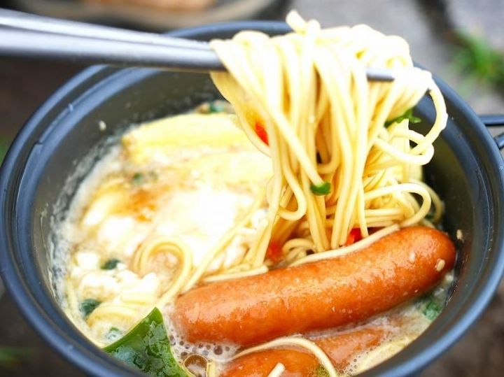ラーメンの汁を飲み干すなど、ごみを出さないことも、山ごはんの大切なマナーです。