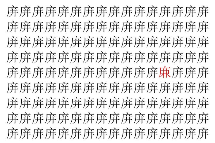 2. 【脳トレ】「庰」の中に紛れて1つ違う文字がある!?あなたは何秒で探し出せるかな??【違う文字を探せ!】