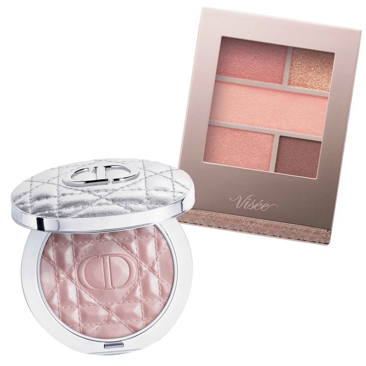 「毎日のスキンケアやメイクは、自分自身が楽しめることが大事。デパコスもバラコスも、ますます大人のミーハー感あふれるおしゃれなパッケージや、可愛い色味のものが増えました!」(左)ディオールスキン フォーエヴァー グロウルミナイザー 03 ¥7,810(パルファン・クリスチャン・ディオール)(右)ヴィセ ダブル ムード アイズ OR-4 ¥1,540〈編集部調べ〉(コーセー)
