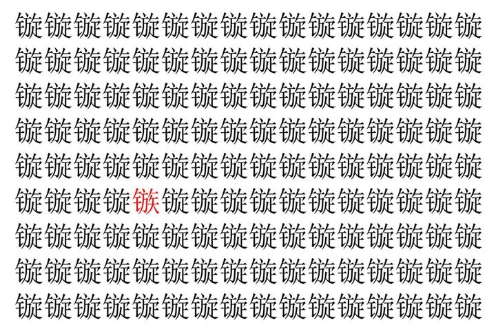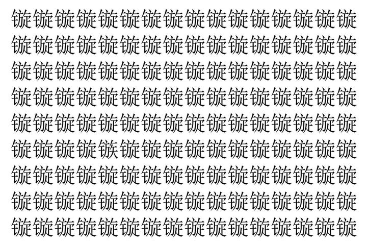 画像の中には、「镟」という漢字が縦に9行、横に16個並んでいます。 全部で144個となりますが・・・、そのうち1つは「異なる漢字」となってますよ!!