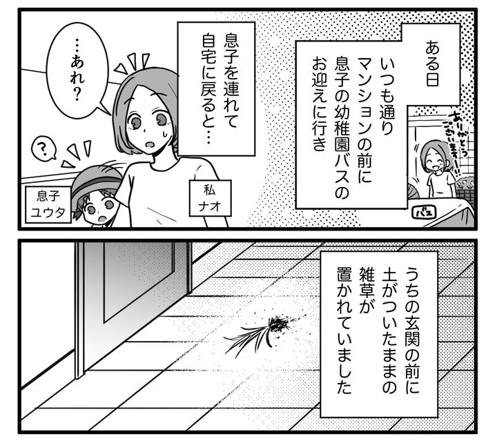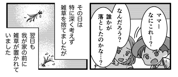 3. <犯人はダレ?>ゾワッ!玄関前に毎日のように置かれる雑草と土。まずは証拠集めから?【まんが】