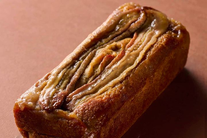 創業1915年の老舗果物店「水信」が手がける「琥珀バナナパウンドケーキ」は、昨年4月にリニューアルされ、発売直後から話題に。バナナの加工卸問屋からスタートした水信ならではのこだわりが詰まった、完熟バナナを主役にした極上の一本。低温ローストしたピューレと果肉を贅沢に使い、キャラメリゼしたバナナをトッピング。ひと口食べると、生地のしっとり感とともに広がるまろやかな甘みと芳醇な香り、そしてザクっとした香ばしいクルミがアクセントとなり、驚くほど軽やかな後味に。冷蔵庫でしっかり冷やせば、まるで“バナナのテリーヌ”のような濃厚さが楽しめるのも魅力です。「幸福を贈る」という意味を持つ“琥珀”の名にふさわしい、大切な方に贈りたいギフト。テイクアウト限定の商品のため、Webにて事前予約がおすすめです。