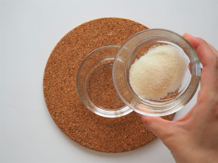 2. 別の耐熱容器に水、ゼラチンを入れる。