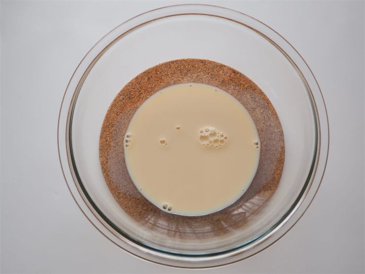 1. 大きめの耐熱ボウルに豆乳(150ml)を入れ、電子レンジ600Wで2分加熱する。
