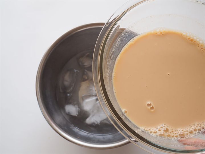 7. 氷水に6のボウルを当て、くるくる混ぜながらとろみが出るくらいまで冷やす。