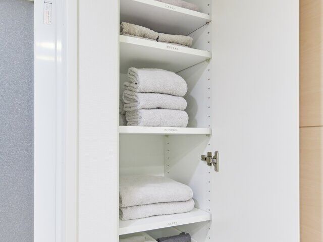取り置くタオルも「ここに収まる量だけ」と、ストック量を決めて管理するのがおすすめです。