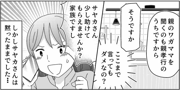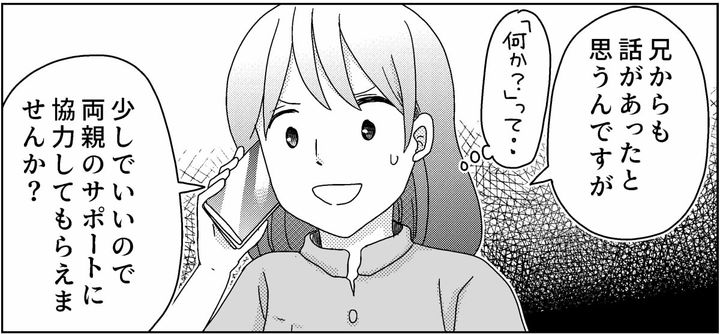 どうにか協力してもらいたいと思った私は、半ば意地になって義姉に親のサポートへの協力を頼み込みました。
