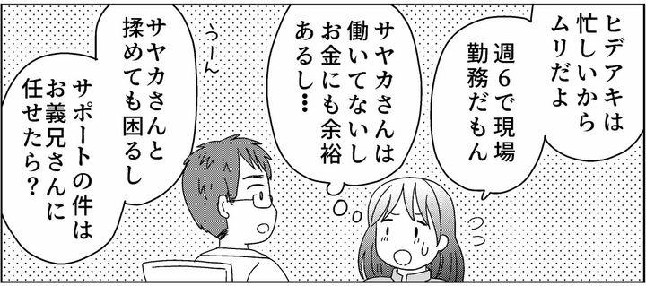 私は夫にも相談しましたが、「(義姉に介護の協力を)強要できない」「揉めると大変だから(義姉のことは)長兄に任せたら」と消極的な意見でした。次兄は「自分の負担が減るなら何でもいい」と他人事です。