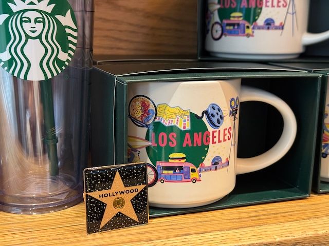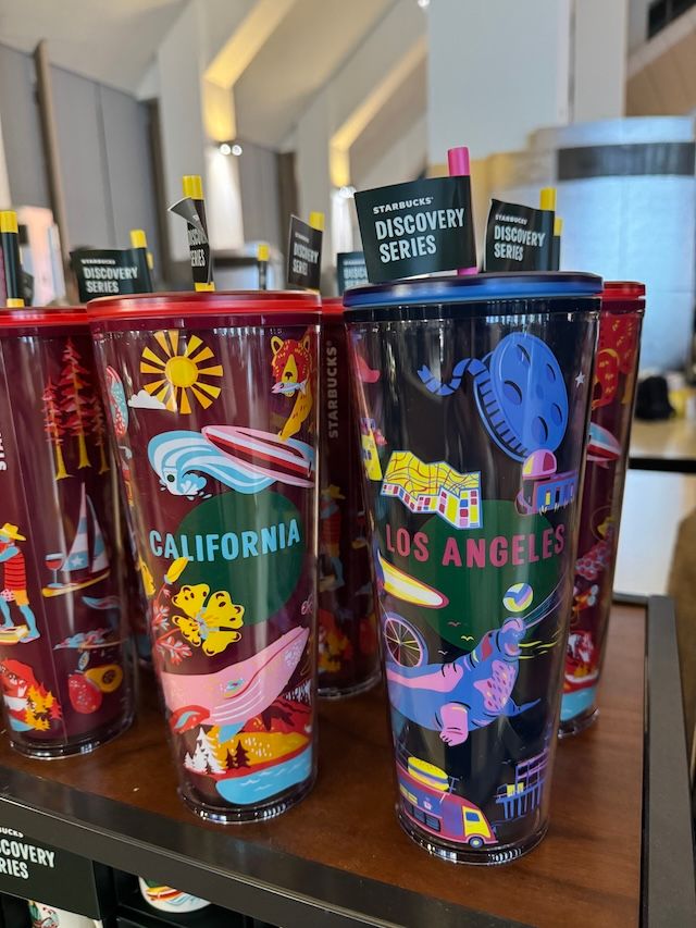 ロサンゼルス国際空港のスターバックスではカリフォルニア・ロサンゼルスならではのデザインが施されたアイテムを手に入れることができます。