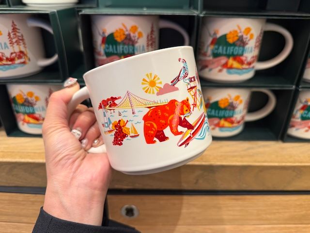 繊細なタッチで可愛いタンブラーも発見。カリフォルニア州の愛称である「黄金の州(The Golden State)」をテーマに表現されているんだそう。茶色いクマは、カリフォルニア州旗にも描かれているカリフォルニア・グリズリー。州のシンボルです! 自然豊かなカリフォルニアの野生を象徴していますね。またイチゴもカリフォルニア名産として有名なんだそう。他のタンブラーにはない発見を感じます。