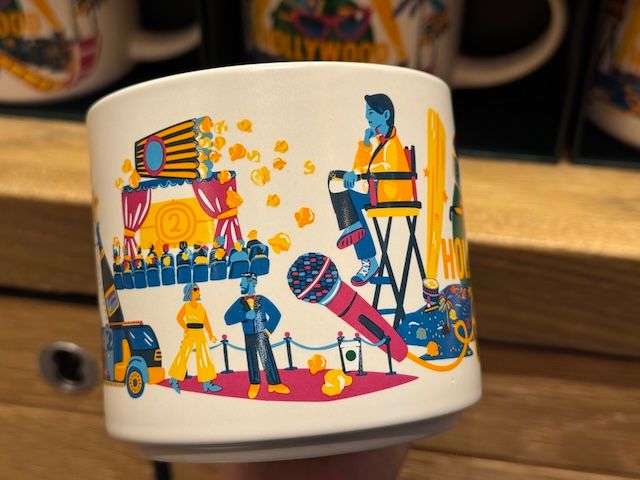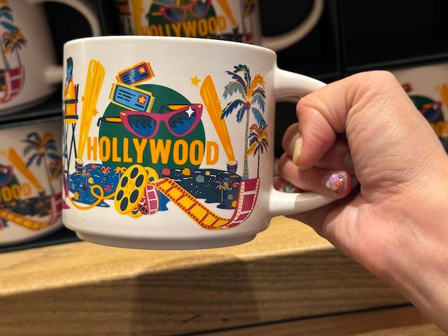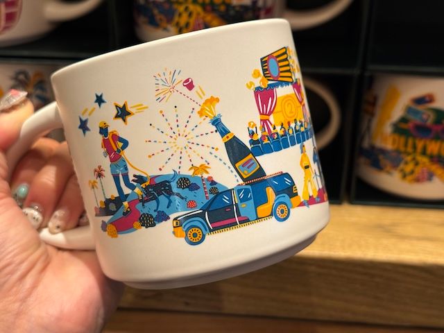 ロサンゼルスらしさを感じられるこのマグカップには、映画のフィルムリールやカメラ、サーフィンや自転車、ストリートフードトラックといったモチーフが描かれています。ロサンゼルスならではのデザインで、旅行の記念にもぴったりです。