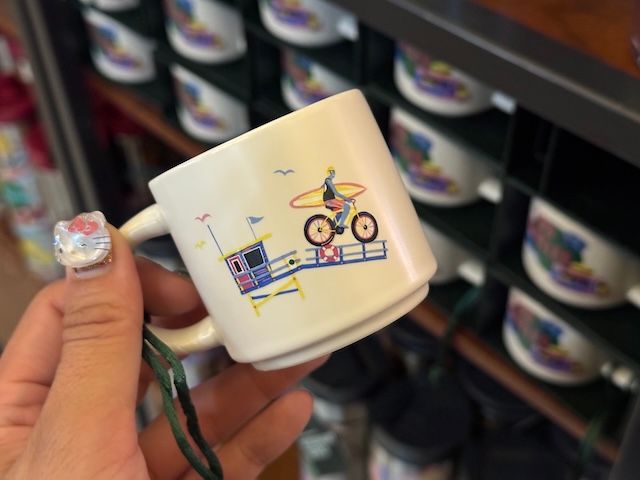 オーナメントもマグカップと同じ構成ですが、裏面のサーフィンに向かうデザインが余白に対してちょこんとレイアウトされていて可愛い! さらに、マグの内側も青に彩られているのも素敵です。