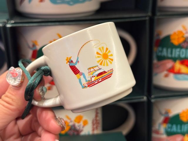 マグカップは、カリフォルニアの美しい風景を描いたデザインが特徴です。ポピーの花やクジラ、釣りを楽しむシーン、そして美しい海岸線が色鮮やかに描かれています。カリフォルニアを代表する自然を感じられるデザインです。