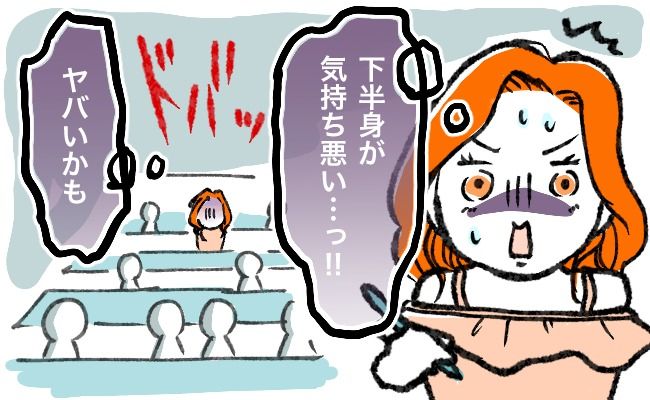 大学生のとき、講義を受けていると下半身に違和感を覚えました。この日は生理予定日のだいたい4日前で、ナプキンは着けていませんでした。「もう生理がきちゃったのかな」と不安でドキドキしましたが、なかなか講義を抜け出せそうにありません。