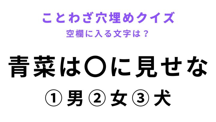 「青菜は〇に見せな」の空欄に文字を入れると、あることわざが完成します。