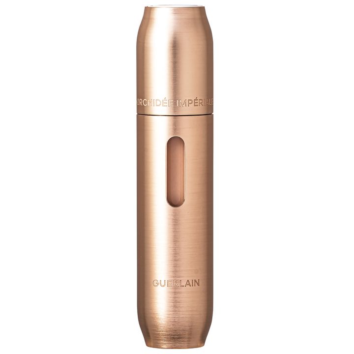 先端についた天然石のカッサでマッサージしながら使用。心地よい使用感と潤いでクマやたるみにアプローチ、明るい目元に。15ml ¥67,100(ゲラン)