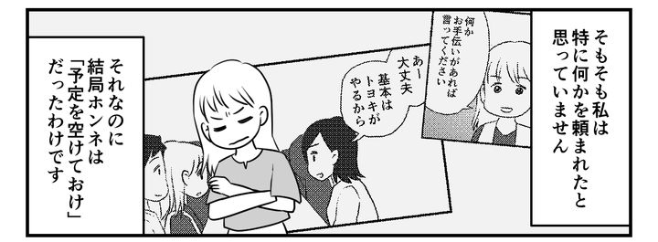 そもそも私は、新盆について特に何かを頼まれたと思っていません。以前に「何かお手伝いがあれば言ってください」と言ったのに、「大丈夫」と返したのは義姉です。それなのに、結局ホンネは「予定を空けておけ」だったわけです。