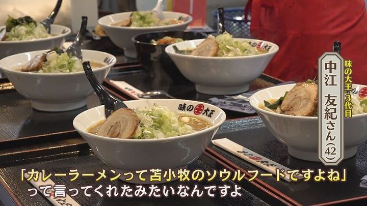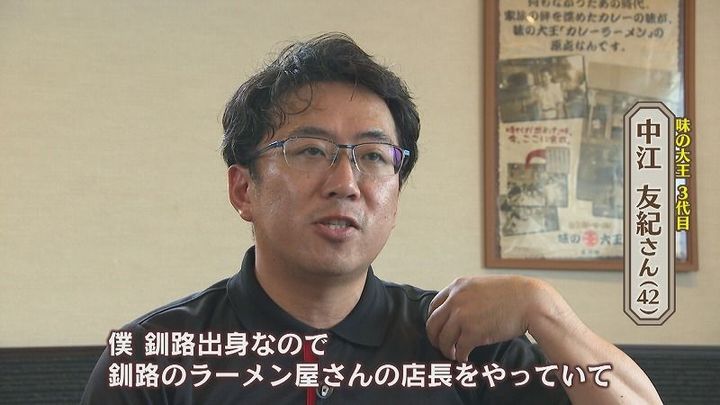 3代目 中江 友紀さん:「残していきたいっていうのは当然あるんですけど、それだと守りにしかならないので、もっと次世代に“カレーラーメン”を広めて根付かせていって、『昔、カレーラーメン食べたよね』みたいな、思い出としてまず残ってもらいたい。『カレーラーメンのために味の大王行ってみよう。だから苫小牧行ってみよう』っていう風になってくれればいいなと思います」
