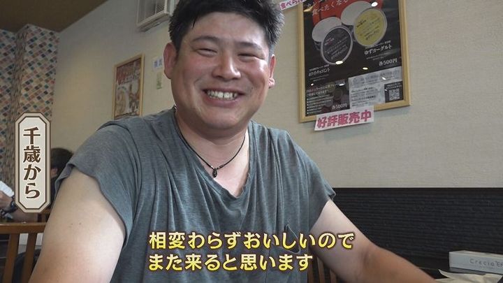 番組スタッフ:「何回来ても飽きない味?」千歳から:「飽きないですね、相変わらずおいしいんでまた来ると思います」