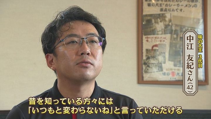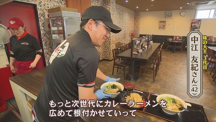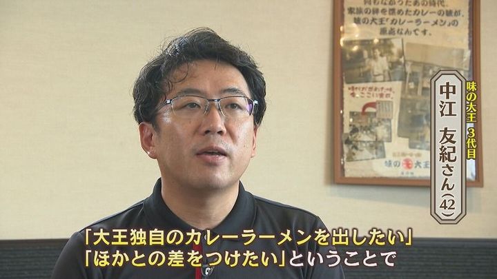 3代目 中江 友紀さん:「やっぱり『大王独自のカレーラーメンを出したい』『他と差をつけたい』ということで、当時カレーライスっていうのもやってたんですよ。カレーライスのカレーとラーメンをかけ合わせたらどうだろうというところで」