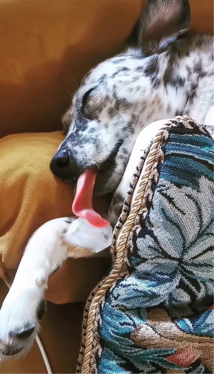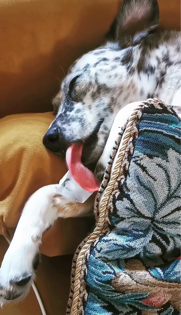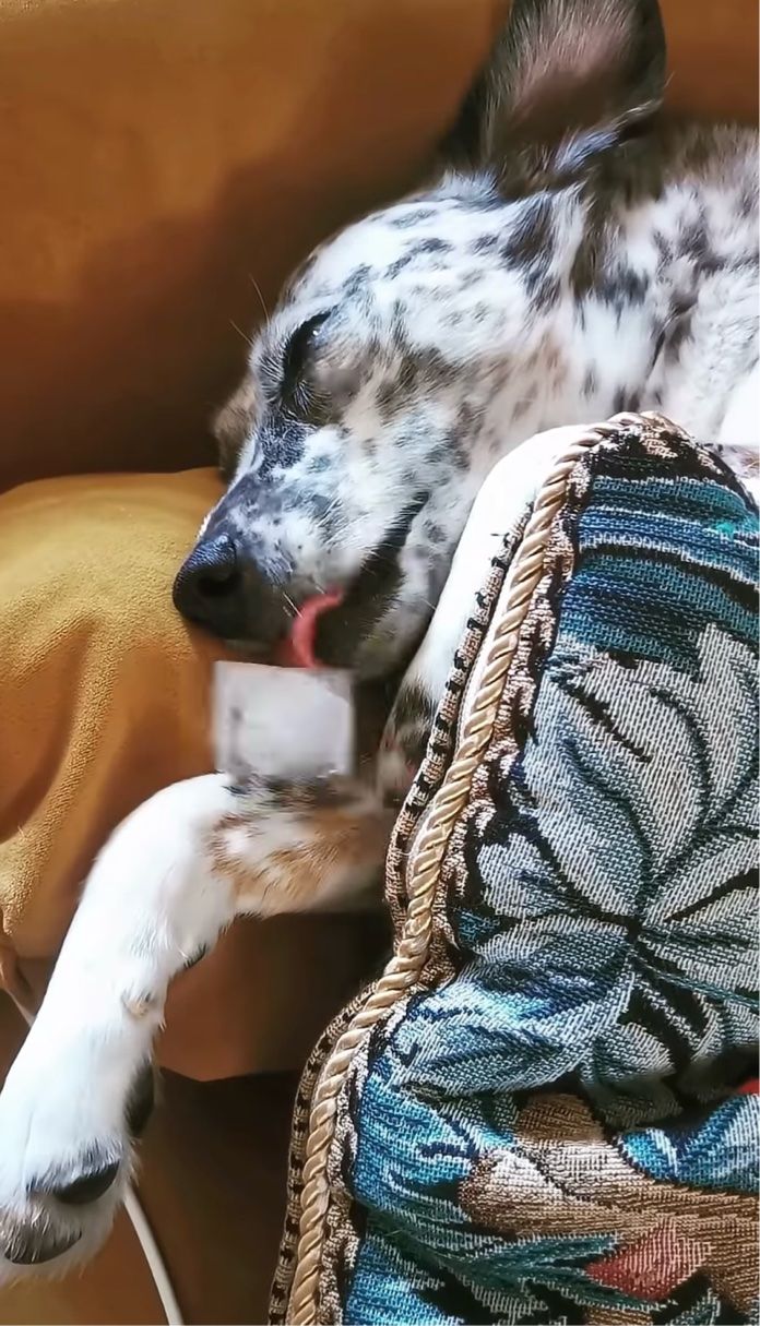 暑さを少しでも和らげようといていたのでしょうか。 寝たまま「あるもの」をペロペロし続ける愛犬の姿を飼い主さんは目撃しました。