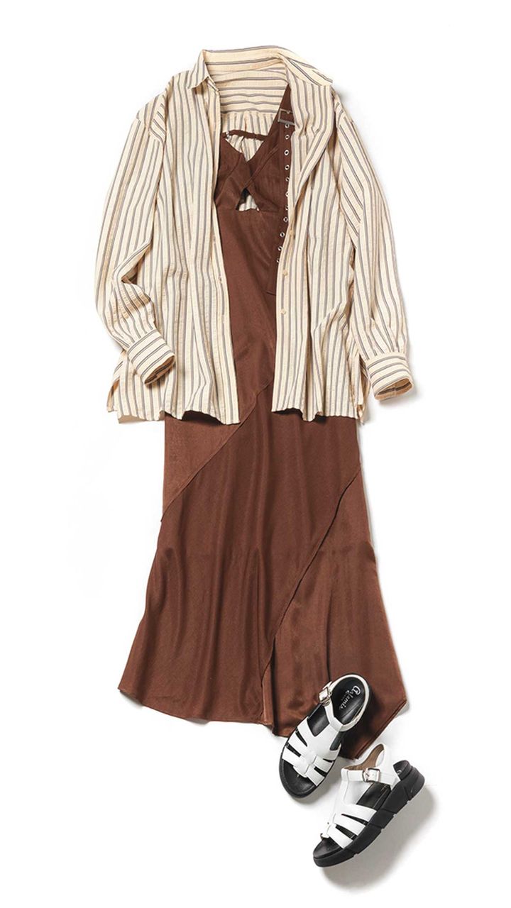 さらっとシャツ&ワンピコーデもブラウンに更新