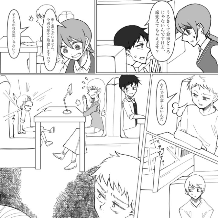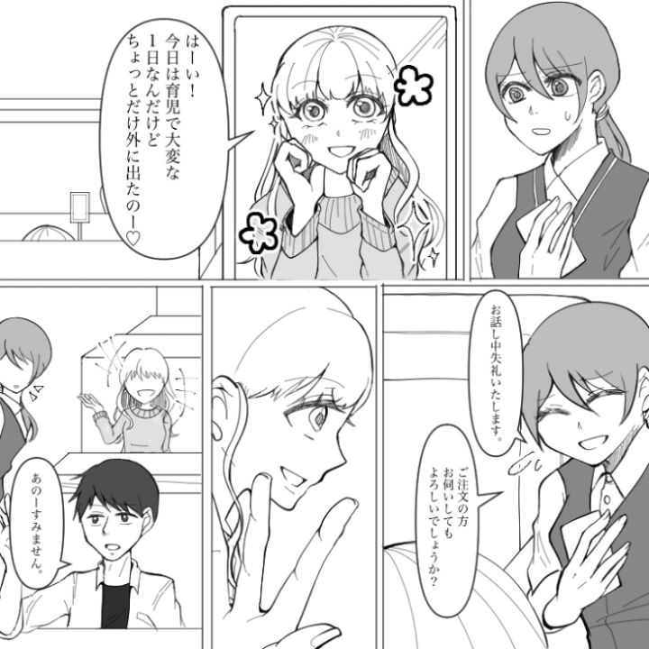 ファミリーレストランで働く主人公。ある日子供を連れた無愛想なママがやってきました。そのママが30分経っても注文もせず席でしていたことは・・・。