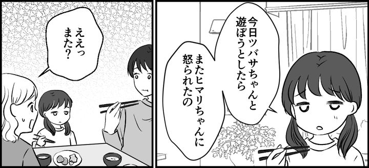 家族3人で、夕食を食べているとき、娘のナナが幼稚園でのトラブルについて話していました。誰とでも遊べるナナなので、年長になってからもクラスの子全員と仲良くしていました。しかし5月頃に、ヒマリちゃんが転園してきてからは少しナナの様子が変わってきました。