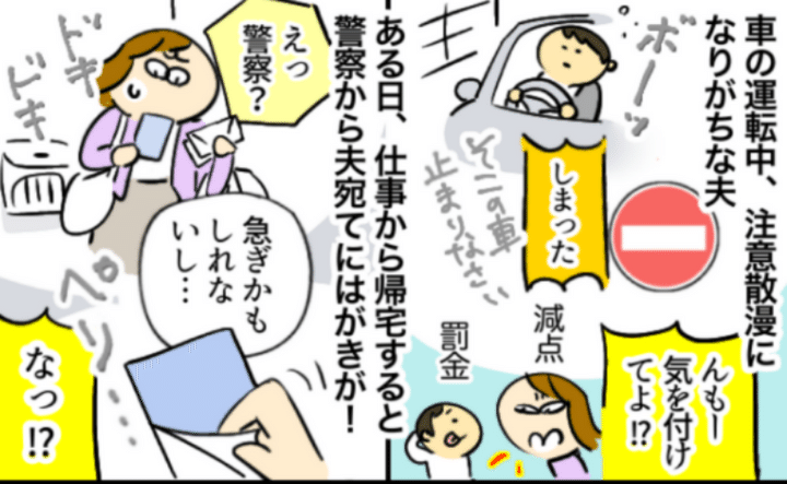 ある日、仕事から帰宅すると、警察から夫宛てにはがきが届いていました。まったく身に覚えがなく、夫からも何も聞かされていない警察からの突然の便りに戸惑った私。