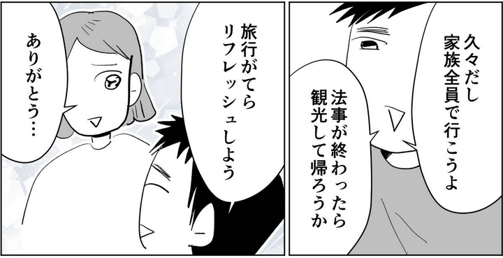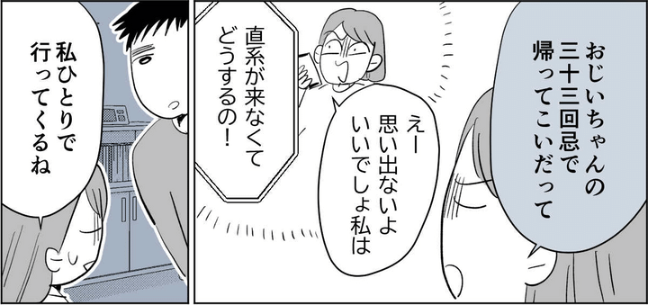 最近よくイライラしている私をリフレッシュさせようという夫の気遣いが嬉しくて、少し気持ちが落ち着きました。そして法事の日、実家に到着すると母方の親戚や知人がすでに集まっていました。相変わらずの母の様子に、さっそくイヤな気持ちになってしまいました。