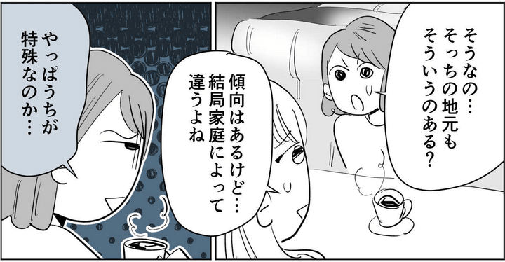 両親や私の親戚たちの行きすぎた言動は、地方特有の文化や習慣というよりは、うち独自のものだとママ友との会話を通じて感じました。