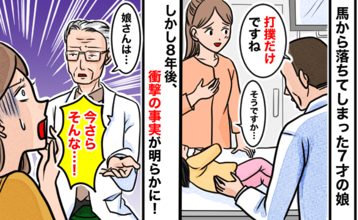 7歳の誕生日プレゼントで乗馬体験に行った娘。そこで落馬し、打撲という診断を受けていたのですが…。