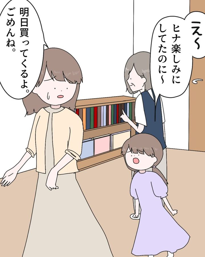 「え~、ヒナ楽しみにしてたのに~。」と不満顔のヒナ。知ってるよ。楽しみにしていたもんね。ママだってまさか義母が勝手に飲んでいるなんて夢にも思わなかったよ!心の中でつぶやきつつ「明日買ってくるよ。ごめんね。」とヒナに伝えました。そんな私たちの会話が聞こえているはずの義母は、素知らぬ顔でヒナの絵本を物色し始めました。
