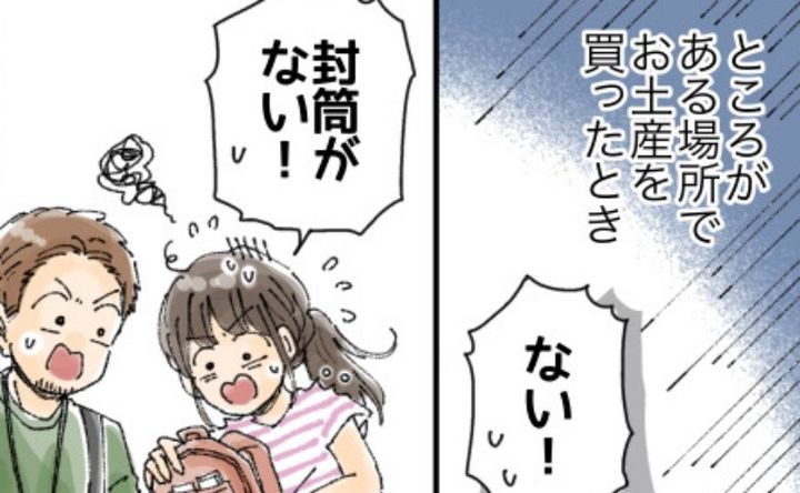 新婚旅行で夫と一緒に国内バスツアーに参加した私。すると、お土産を買った際にお金を入れた封筒を落としてしまい……。