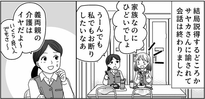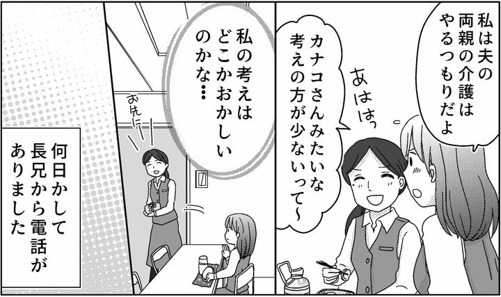 同僚にも「私なら義両親の介護は断る」と言われ、自分の意見は少数派なのかと戸惑います。