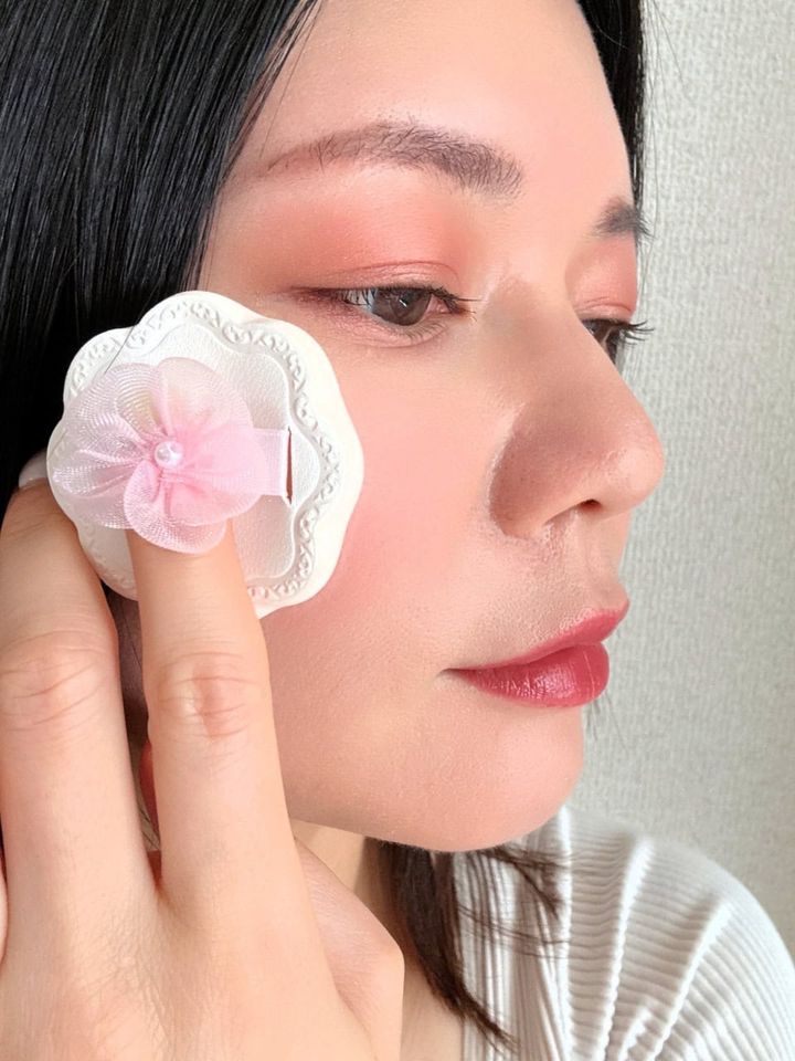 「パステルペタル ブラッシュを塗るときに愛用しているパフ。マシュマロみたいにもちもちした質感で肌当たりが気持ち良いです」