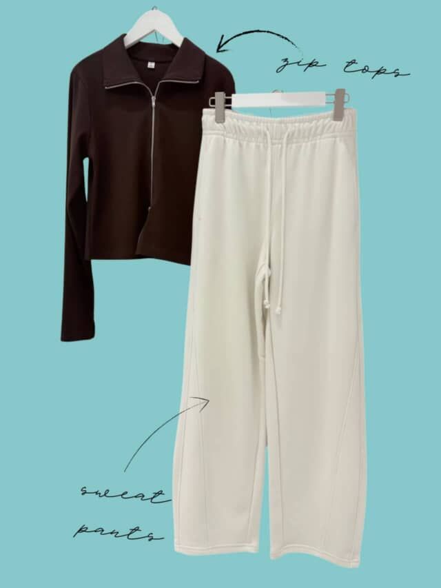 ジップトップス×スウェットで“カジュアル上手”—肌見せは“縦”を強調
