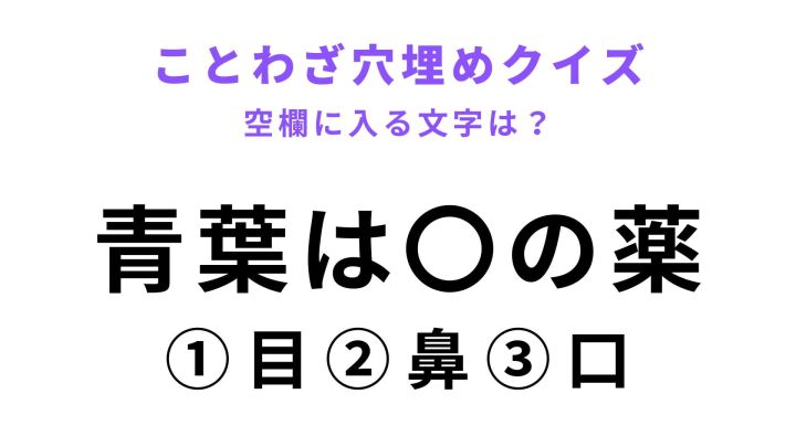 ことわざ「青葉は〇の薬」には、なんの文字が入る?