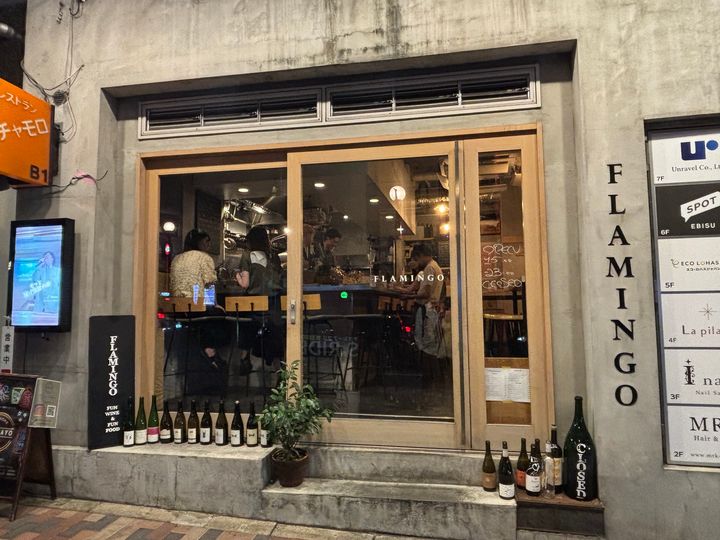 お腹が空いてきたら訪れて欲しいFlamingo(フラミンゴ) は、カジュアルでオシャレな雰囲気が魅力の イタリアン&ワインバー。恵比寿駅から徒歩1分とアクセス良好で、自然派ワインと創作料理を気軽に楽しめるバルとして人気のスポットです。